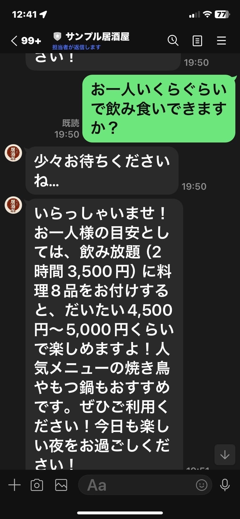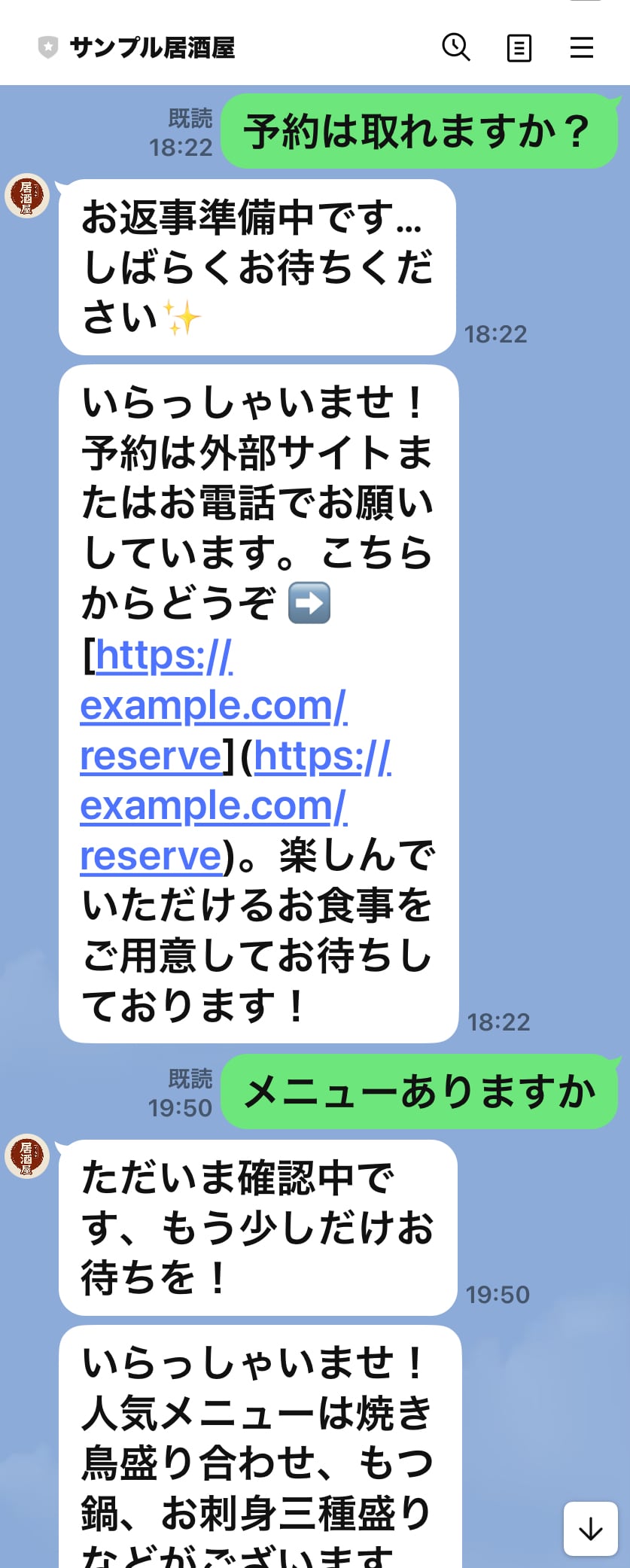 サンプル 居酒屋お問い合わせ版 LINE対応チャットボット