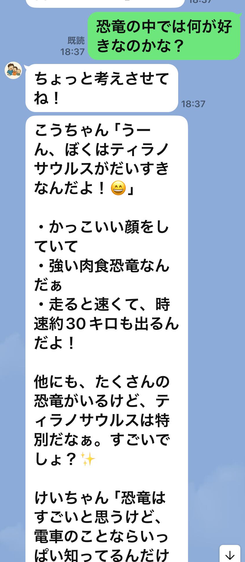お孫さんの特徴を表示するように設定してありますので、まるでお孫さんが直接会話しているような雰囲気で楽しめます。