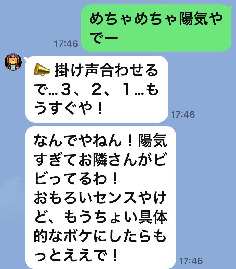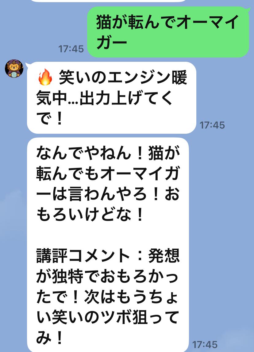 お笑いのプロがあなたのボケに対して、鋭いツッコミを入れます。